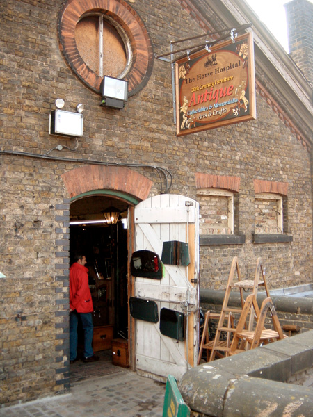 市場の入り口付近は若者向けの服や、どうってことのない雑貨のお店ばかりだけど、奥へ進むとこのようなレンガ造りの建物(もともと馬屋?)があり、その中に小さな骨董やさんがひしめいていました。