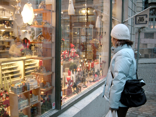 この地域は基本的には観光客が多く、お土産やさんがたくさん並んでいるけど、そこはスウェーデン、お土産物のデザインのレベルが高い!!
