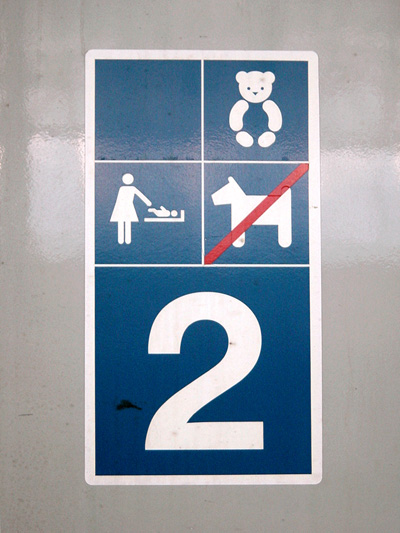 左は赤ちゃんが乗っても大丈夫な車両のマークかな?。イヌは禁止みたいですね。