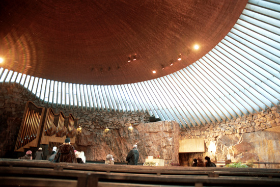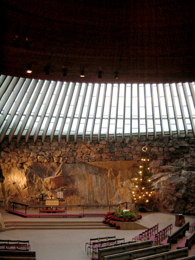 次にまた建築好きの夫先導で、テンペリアウキオ教会へ。