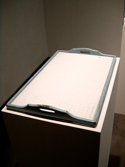 右は大きなお盆に白い角砂糖をびっしり敷き詰めただけのオブジェ。