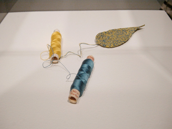 この作品は糸巻きから出た糸で葉っぱが編まれているだけなんだけど、