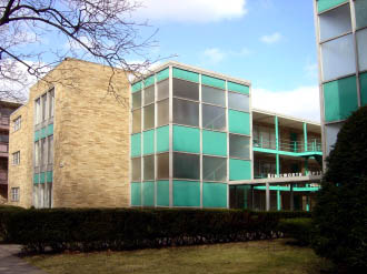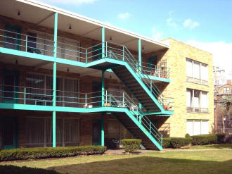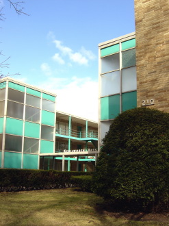 ライトとはまったく関係ないのですが、近くの住宅街でかわいらしいアパートメントを見つけました。1950-60年代っぽい感じ。
