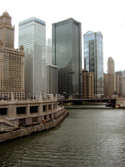 ふたたびダウンタウンへ。ダウンタウンのシカゴ川沿いには高層ビルが建ち並んでいて、その多くが建築学上有名なものが多いそうです。