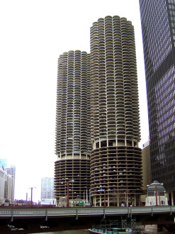 シカゴ川のほとりに建つマリーナ・シティというふたごのビル。