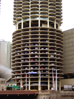 シカゴを代表する建築のひとつです。60階建のツインタワーで下階が駐車場、上階が店舗や住宅の複合ビルになっています。
