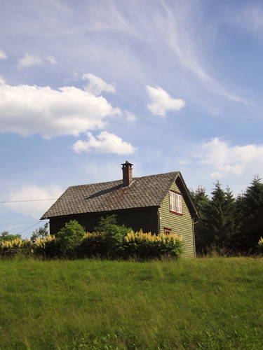 ノルウェーの古い家はみんな屋根が魚のうろこみたいなデザインで、
