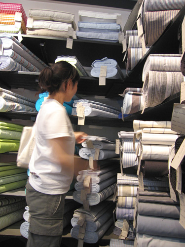 次にストロイエ近くのホー・スキャン・ピーという雑貨店へ。 2階は生地屋さんになっていて、生地を4〜5種類購入。