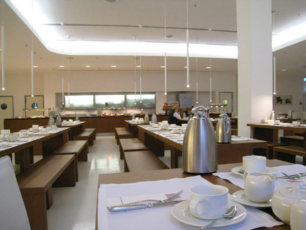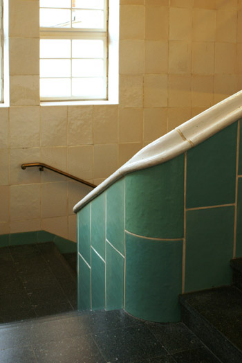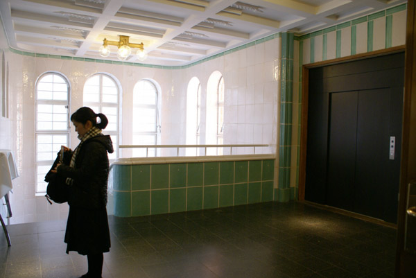 翌日は早起きして朝食がてらじっくり建物見学。 朝の光のもとで改めて見ると、エレベータホールとか階段のデザインがすばらしい!