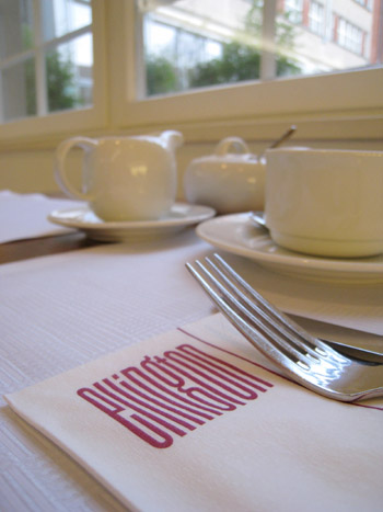 中庭に面した窓際の席が気持ちいい。 ダイニングルームがまた素敵です。ビュッフェのメニューもすごく充実。 撮り損ねてしまったのですがベレー帽にエンジ色のベストに白いシャツというホテルスタッフの制服もかわいかった。