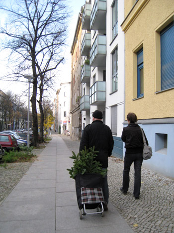近所の人がもみの木を買って帰る、の図。 そういえばそんな季節がもうすぐです。