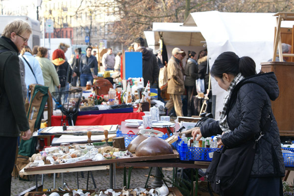 たどり着けました。このにぎわい、この雰囲気! まだ始まったばかりらしくて品物を準備しているお店が多数。 蚤の市は朝一番が勝負なのです。 私たちもやる気満々!