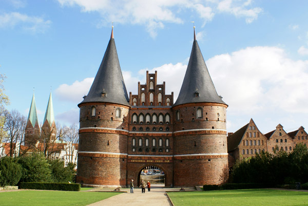 川べりに建つホルステン門はリューベックを守る門として14世紀に建てられたもの。