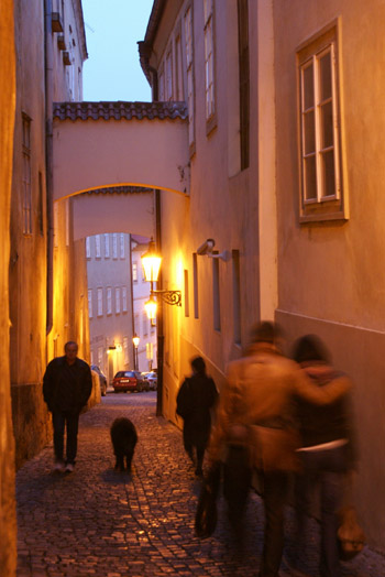 街灯に灯がともる日没前のひとときがとてもきれいな街。