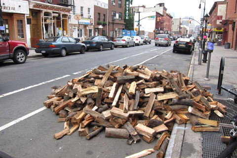 なにこれ??道路にいきなりマキの山が。 単に誰かがまき散らしたもの?それともアート? どちらにしてもこういうダイナミックさがアメリカ。 そしてお昼ご飯はザガットマークがあるレストランを見つけて ちょっと遅めのランチ。 周囲のテーブルをきょろきょろするとみんなハンバーガーを食べてる人が多くて 私たちもチーズバーガーをオーダー。 やはりおしかっった。