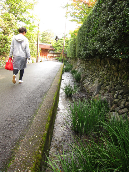 水路閣のわきの道を上っていくと実際に水路を水が流れているのを見ることができました。 |