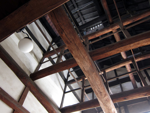 本堂にて。上を見上げると木組みがすごい。
