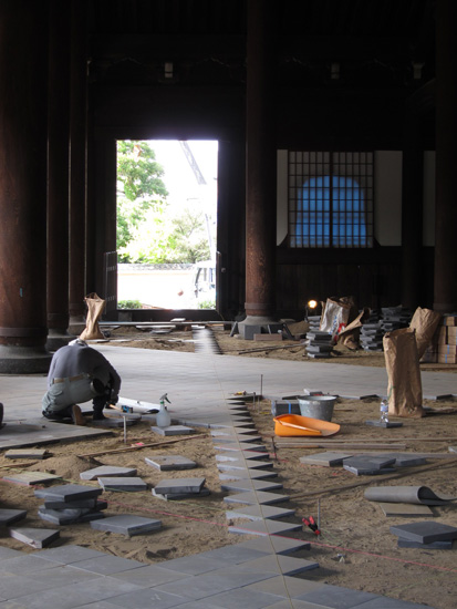中では職人さんが黙々と床の石貼りをしていたのが印象的でした。