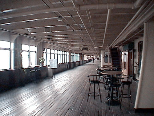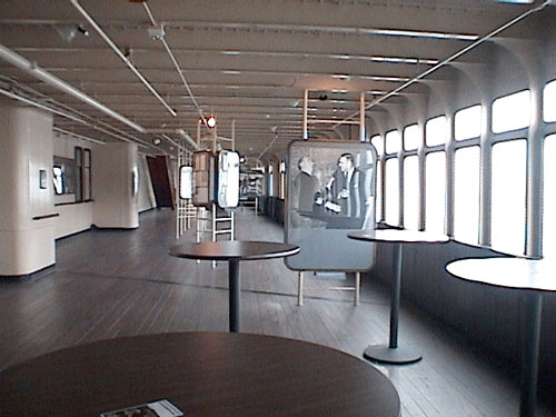 甲板も当時のまま。当時は着飾った貴婦人たちが集っていたりしたのでしょうが、今はクイーンメリー号の足跡を説明するちょっとした博物館みたいになってます。