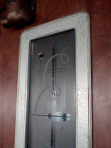 入口のドアのガラス模様、そしてそのまわりの銀細工がまさにアールデコ。すてきですね。