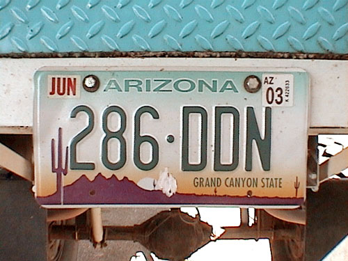 上の写真はそのトラックについてたナンバープレート。アリゾナっぽいデザインですね。