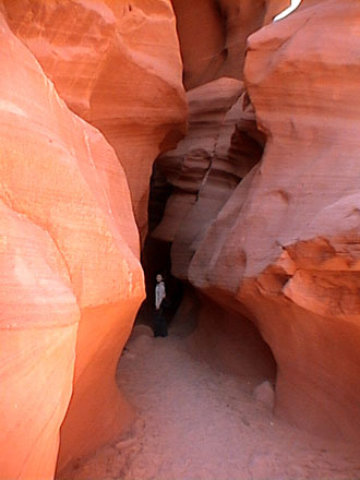 赤い岩の裂け目に飲み込まれていく私。
