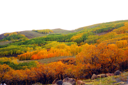 あれほど続いた赤い岩と砂漠、という風景に替わり、こんな紅葉が見られました。なんだか日本の秋の風景に近いですね。ほっとします。
