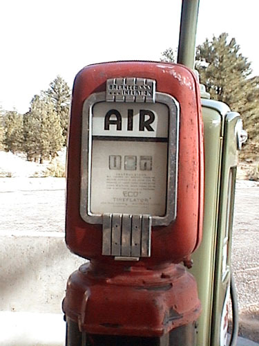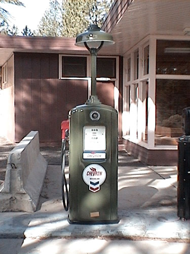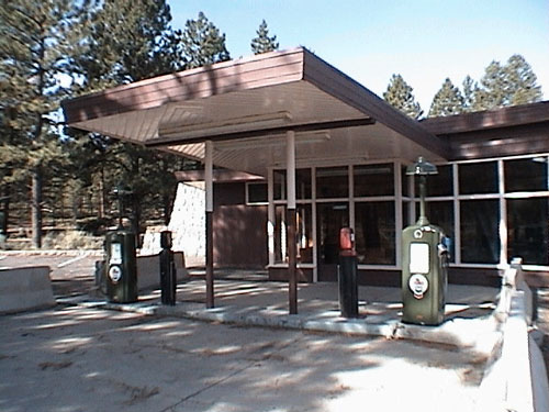 ビジターセンターの近くで夫がめざとく発見した、アンティークガソリンスタンド。一見何の変哲もないガソリンスタンドに見えますが。。