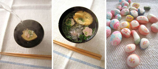 お湯を注ぐと、中から細工麩と一緒に桜が出てきました.