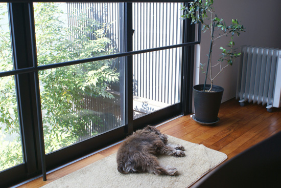 人間も犬もぴかぴかになった床に寝っ転がっておひるね。