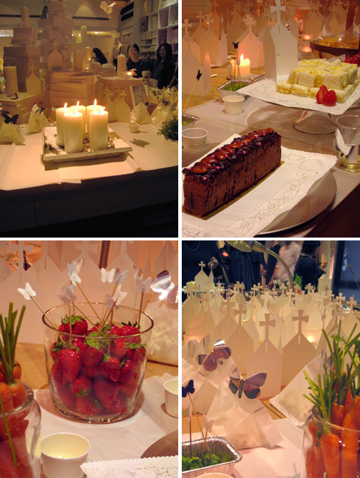 食べものは1人1品の持ち寄りで、それを受付で預ける時、教会の形をした紙のカードに名前を一緒に書いて下さいと言われました。